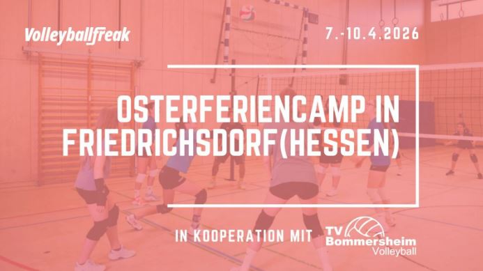 Osterferiencamp 07.-10.04.2026 20. April 2025 Seb Anmeldung und weitere Infos erhaltet ihr unter: Osterferiencamp 2026 in Friedrichsdorf bei Frankfurt a.M. – Volleyballfreak